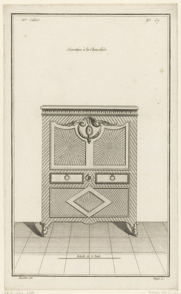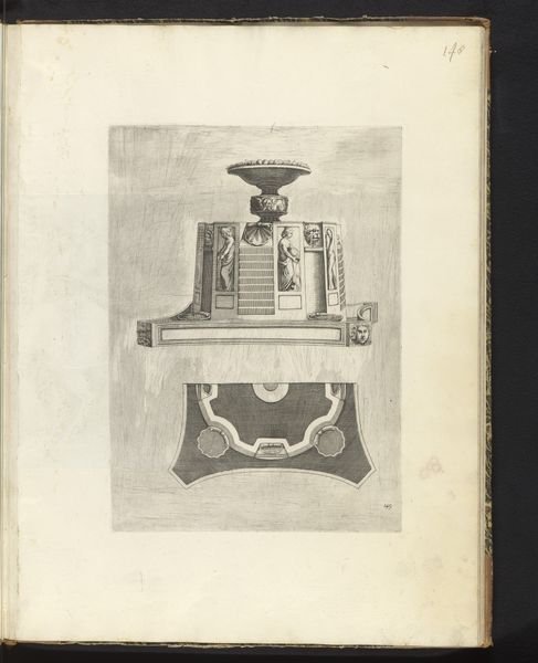 This is an etching, an early form of printmaking, by an artist named Raux. The image shows an elaborate tomb, complete with a sarcophagus, memorial inscription, and classical architectural details. What's remarkable is the degree of control that the artist had over their materials. To create an etching, the artist would first coat a metal plate with a waxy, acid-resistant substance. Then, using a sharp needle, they would draw their design, exposing the metal underneath. The plate is then submerged in acid, which bites into the exposed lines, creating grooves. Finally, the plate is inked, and the surface wiped clean, leaving ink only in the etched lines. When paper is pressed against the plate, the image transfers. The labor-intensive process of etching allowed for the relatively easy reproduction of images, which aided in the dissemination of knowledge, and in this case, the memorialization of the deceased. The fine lines suggest a deep engagement with the craft of printmaking. The artist's hand is evident in every stroke, blurring the boundaries between art, craft, and industrial production.