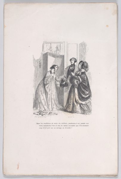 This lithograph, by Frédéric Bouchot, captures a scene ripe with social commentary and laden with the symbolism of its time. Note the central exchange: a gentleman presents a woman with a gown, a transaction of sorts, overseen by a servant. The gown, a symbol of status and beauty, reappears throughout history. It is akin to the vestments of Renaissance Madonnas or the regal robes of ancient queens. Yet, here, its presentation takes on a different hue. It whispers of societal expectations, of women as objects of display, mirroring earlier depictions of goddesses adorned in finery, albeit with an underlying current of critique. The woman’s posture—her acceptance of the gift—is a visual echo of countless historical depictions of courtship and patronage. The artist conveys a complex interplay of power, desire, and societal norms, engaging us on a subconscious level. The cyclical nature of such exchanges resurfaces through art history, evolving with each era, reflecting humanity’s enduring yet ever-changing dance of status and desire.
