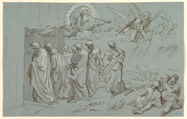 Editor: Here we have Willem Joseph Laquy's "Entombment of Christ," made sometime in the 1700s. It's a drawing created with ink and watercolor. It strikes me as quite somber, especially with the muted colors and the way everyone is huddled around Christ’s body. What’s your take on this piece? Curator: This drawing gives us a glimpse into the intersection of religious narrative and social consciousness in 18th-century art. Consider how the figures surrounding Christ, often depicted as archetypes of grief, can also be viewed as stand-ins for marginalized communities. Laquy invites us to consider themes of injustice, sacrifice, and the very human response to loss. Editor: So, it's not just about a biblical scene? Curator: Not just. It reflects a specific social environment and functions to ignite viewers' awareness and compassion for all those who suffer. The artist employs religious iconography to speak on universal social conditions, inviting you to find parallels to contemporary struggles and the collective need for empathy. How does that perspective resonate with you? Editor: That makes me see the image in a totally new way, connecting historical narratives to today's world. The crown of thorns on the lower left isn't just symbolic, it speaks volumes. Curator: Absolutely. Think about power dynamics reflected in this seemingly quiet scene and the political weight inherent in narratives of oppression and redemption. By situating Christ's entombment in a broader context of human suffering, Laquy challenges us to think critically about the structures that perpetuate injustice and the importance of standing in solidarity with those who are most vulnerable. Editor: I had no idea one image could hold so many layers. I'm leaving with a deeper appreciation and understanding. Curator: That’s the power of art—to illuminate our shared humanity and spark dialogues that transcend time.