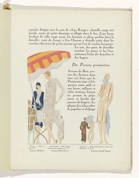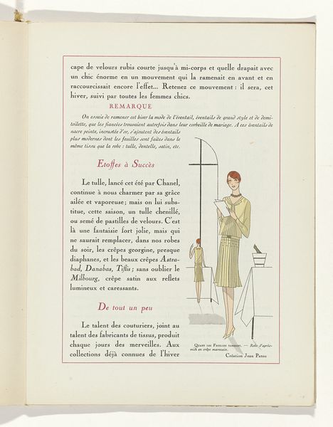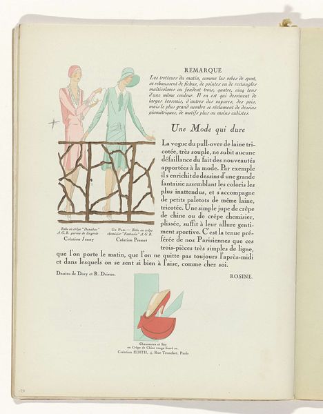 This magazine illustration, Art - Goût - Beauté, Feuillets de l' élégance féminine, was made in Paris in 1929 and features the delicate stylings of the era. The first thing I notice is the treatment of colour; soft pinks and yellows overlaying the black text, the printing process itself creates a kind of painterly effect. It’s interesting how the figures are presented, one looking directly at us, and the other reflected. You might think of the mirrored woman as a kind of doppelganger, or a premonition. The two figures, or rather the two images of the same figure, are bound together by the mirroring ellipse of the mirror, which is only very lightly sketched, giving a ghost-like quality. The gentle hatching and restrained use of line feels reminiscent of Matisse's line drawings from the period, but here the artist is using the language of commercial illustration to talk about beauty, and, ultimately, commerce.