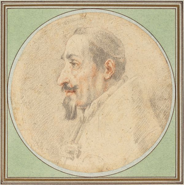 Editor: This is Ottavio Mario Leoni's "Portrait of a man, half-length turned to the left," created between 1578 and 1630 using pencil. The subject's gaze and poised demeanor make him appear quietly self-assured. How would you interpret the artistic elements within this piece? Curator: Focusing on the intrinsic properties, consider how Leoni orchestrates line and form. The sketch emphasizes contours and inner lines to capture not merely a likeness but a spatial embodiment. Note the strategic employment of hatching. Where is it most dense, and how does it serve to model the form and articulate the planes of the face and garment? Editor: I see that heavier hatching around the eyes, nose, and collarbone adds depth. The more loosely defined lines around the shirt give it a sense of being incomplete. Curator: Precisely. The contrasting levels of finish contribute to the drawing's dynamism. Observe, too, how the directionality of the lines adds a textural richness. Are you drawn to the texture or is something else noteworthy? Editor: It also enhances the overall energy. The unfinished areas create visual interest. There is tension between precise facial features and more general suggestion. Curator: Yes. Also, do the dimensions relate specifically to the formal elements, perhaps even the way the piece is read, understood, and seen in your view? Editor: Absolutely, the size forces you to get close, and you appreciate the artistry. I've noticed more attention paid to line work, shadow creation and attention to facial and garment details, like the collars and lapels, that define the composition. Curator: Indeed. A formalist reading prompts a keen awareness of such compositional nuances. Editor: That's a great observation! I definitely learned a new approach today to analyze artwork. Curator: As did I, I appreciate your insights.