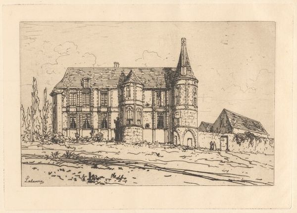 "Castle with Two Wings" is an etching made by Maxime Lalanne, a 19th-century French artist known for his detailed architectural and landscape prints. This work reflects the 19th-century European fascination with the past, particularly with medieval and Renaissance structures. It's as though Lalanne invites us to step back in time, evoking a sense of nostalgia for a bygone era. However, this nostalgia often came at the expense of acknowledging the complex social hierarchies and inequalities inherent in feudal societies. Castles were not just symbols of architectural prowess but also emblems of power, class, and often, oppression. Lalanne's focus on aesthetics, while masterful, risks romanticizing a history that was far from idyllic for many. As you gaze upon this image, consider the stories it doesn't tell, the voices it silences, and the realities of life within and beyond those castle walls.