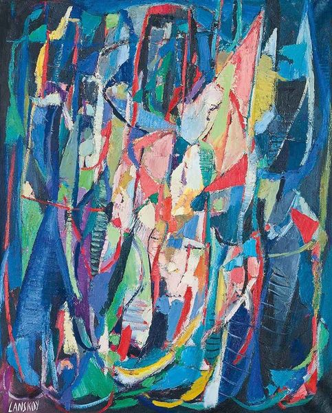 Curator: "Belebte Landschaft," or "Animated Landscape," painted by Adolf Hölzel around 1925, seems like a vibrant exploration of color and form. It’s mixed media, right? Editor: That’s correct, yes. I find it so visually energetic, almost chaotic, yet the longer I look, the more I see the structure holding it together. What do you see in this piece, Professor? Curator: Well, I see a potent rejection of traditional landscape painting and a challenge to bourgeois norms of representation. Hölzel, through his participation in the development of modernism in Germany, consciously disrupts conventional aesthetic values. Look at how he employs fauvist and expressionist techniques. How does that communicate defiance to you? Editor: The use of arbitrary color, definitely! The landscape is no longer about mirroring nature, but about expressing subjective experience and possibly, rebellion. The geometric forms feel… almost violent in their angularity. Curator: Precisely! Hölzel was interested in synesthesia. Do you think the colours reflect sounds he associated with nature or other political themes? The piece acts as a statement against the staid academic art that preceded it and also maybe hinting the upcoming societal disruption of the 20's? What do you think of that potential historical association? Editor: I hadn’t considered that, but it’s really intriguing. It does lend another layer to the "animated" aspect of the landscape—a sense of social unrest bubbling beneath the surface. Curator: Art isn’t created in a vacuum. And looking at this work through a lens that accounts for its historical and socio-political context enriches our understanding. Editor: It definitely makes me appreciate the painting on a deeper level. Thanks so much, Professor. Curator: My pleasure. Always remember, art is as much about what it *says* as it is about what it *shows*.