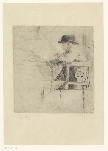 Edgar Chahine made this print of Henry Gerbault in an unknown year with etching. It's all about lines here, folks, the kind that create shapes, depth, and a mood that’s both studious and intimate. The texture is built by the scratching of the plate, and the way the ink sits on the paper, it’s not trying to hide anything, laying bare the process. The darkest darks near the window throw the foreground into sharp relief. Looking at Gerbault’s face, you can almost feel the weight of thought, the concentration etched into his brow. See how the light catches the edge of his book, turning the pages into planes of possibility? Chahine reminds me of Whistler, both were masters of suggestion. Like a good conversation, this print leaves you with more questions than answers, and that’s exactly the point.