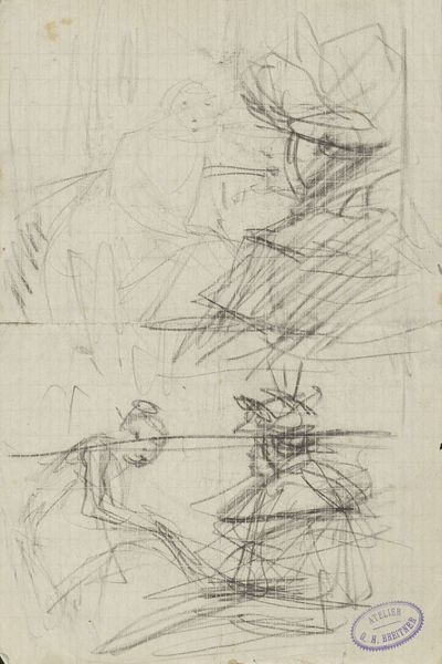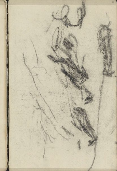 This is Studieblad met staande vrouwen, made by George Hendrik Breitner, likely in the late 19th or early 20th century, with graphite on paper. The quick, loose lines, so characteristic of a sketch, make visible Breitner’s rapid hand movements. You can almost feel the artist's presence, capturing fleeting moments and gestures. The graphite is applied with varying pressure, creating depth and shadow, and volume. The choice of graphite as a medium suggests a sense of immediacy and accessibility, in stark contrast to the laborious processes of oil painting. It allowed Breitner to quickly record his observations of everyday life. There is a directness that brings these women to life, without any artifice. Breitner's emphasis on material, making, and context enriches our understanding of his work, challenging traditional notions of what constitutes art. It reminds us that art is not just about the final product, but also about the processes and social conditions that bring it into being.