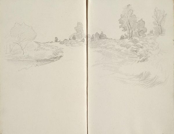 Editor: Here we have Edward Burne-Jones's "Landscape", a pencil drawing on paper. It's a delicate sketch, almost ethereal in its lightness. What can you tell me about its historical context? Curator: Considering Burne-Jones's Pre-Raphaelite leanings, it's fascinating to see such an unadorned landscape. This sketch, likely from a personal sketchbook, reveals the artist engaging with the natural world outside the more formal constraints of his painted allegories and mythologies. How might this inform our view of his larger artistic project? Editor: I hadn't thought of it that way, but seeing this as a departure from his better known works does offer a fresh perspective. Thanks! Curator: Indeed, it suggests that even within highly stylized movements, artists often engage with the world in varied and complex ways.