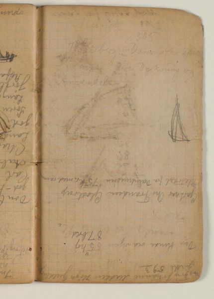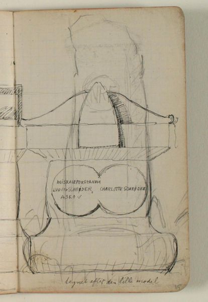 Curator: I'd like to introduce "Studier af gravsten. Notater og adresser," a pencil drawing on paper by Niels Larsen Stevns, created between 1900 and 1905. It is currently held at the SMK, Statens Museum for Kunst. Editor: My immediate impression is of something haunting and incomplete. The sketchiness and the subject matter evokes themes of mortality and remembrance. Curator: Absolutely. Stevns was deeply engaged with medieval art and culture, particularly during this period. The choice to depict gravestones reflects an interest in historical and cultural memory. Graveyards and memorials were, and remain, powerful symbols of national identity and social continuity. Editor: From a formal perspective, I'm drawn to the almost architectural quality of the gravestone sketch. The composition emphasizes verticality, creating a sense of solemnity. The lines are delicate yet firm, outlining the forms. The accompanying notes indicate detailed measurements of the different sections within this layout, further conveying a very architectural sensibility. Curator: You're right; his careful note-taking offers great insight to his creative process. Also worth noting is Stevns' inclusion of seemingly random addresses alongside his subject and measurement notes. Editor: I see what you mean: What could it mean that someone named "Julius Blomoz" appears amongst technical measurement notes of headstones? It adds a layer of intrigue. Were these commissions? Influences? Curator: Perhaps. The notes, in effect, add another layer to the way society engages with death rituals, by documenting who specifically played what role, and the amount of precision and intention put in place when laying a memory to rest. Editor: This study offers much more than a simple historical record. It combines the visual and textual, transforming personal remembrance into the grand scheme of time. Curator: Indeed. It serves as a potent reminder of our collective history and the enduring power of art to immortalize both individuals and ideas.