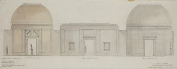 Eggers and Higgins created this image of Sculpture Gallery 35 sometime between 1937 and 1975. It presents the kind of cool, classical architectural style we associate with museums. The drawing presents the symmetrical design of a large gallery with a domed ceiling. In the center, there is a doorway and what appears to be a fountain. On either side, we can see classical statues standing on pedestals. The classical style of the design reflects a very specific attitude toward the role of institutions as places of learning and public life, especially in the U.S. during the twentieth century. We might look to sources such as architectural journals, government documents, and the writings of museum directors to gain a fuller understanding of the values attached to this kind of design. Ultimately, the meaning of this artwork is to be found in its relationship to institutional and cultural history.