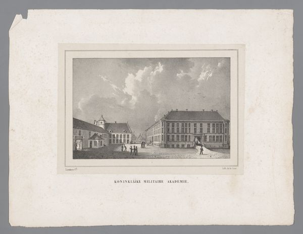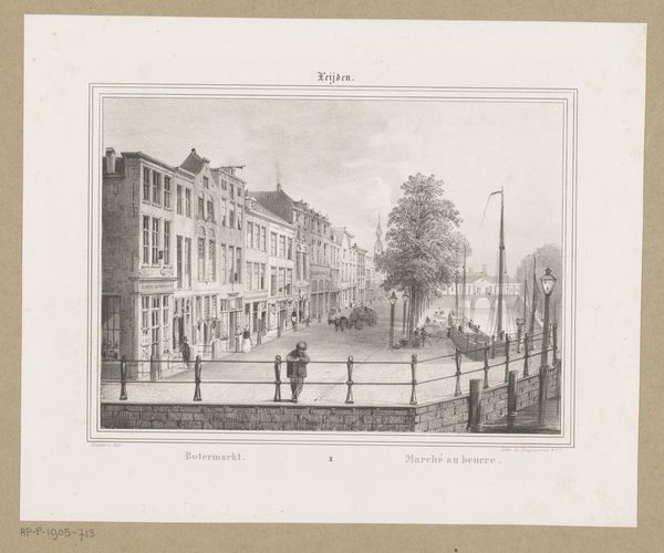 Curator: Looking at this print, I'm immediately struck by how everyday it feels, yet with a kind of delicate formality. Editor: Indeed. The artwork, attributed to Barend Cornelis Koekkoek, captures the Grote Houtbrug in Haarlem in 1831. It’s an etching on paper, giving us this wonderful sense of light and shadow. What I see here is a specific narrative of place and people in their moment. Curator: Yes, the quotidian elevated! Notice how the bridge, though central, is not monumental. The people gathered seem almost posed, yet engaged in simple, plausible acts. There’s a powerful evocation of collective memory through this image of what might seem ordinary life, rendered enduringly beautiful. Editor: But isn't the so-called "ordinary" always encoded with power dynamics? I can’t help but wonder who is depicted here, and who is left out. Consider the labor behind maintaining such a pristine cityscape; we don't see them, the print instead presenting us with the genteel class. Curator: That's a compelling point about omission. At first glance, it may read simply as an image of societal harmony, a genre painting reflecting Romanticism’s love for landscape and nature. Yet, you are right; there are social strata visibly and invisibly at work. I appreciate your observation about the visual silences within. Still, these figures project ideals of the domestic and community in the era, ideas the rising merchant class certainly espoused. Editor: It’s the quiet power of these kinds of images. What seems like innocent depiction actually participates in shaping perceptions. I see the bridge itself as a potential metaphor, linking the visible with the unseen structures of its society. Even the dog running freely seems to occupy an uncontested terrain… an illusion perhaps. Curator: So the city, then, isn't just a collection of bricks and mortar but a symbolic arena where class and aspiration meet in coded interactions? Editor: Precisely. And I think that tension is what makes this etching, a seemingly simple street scene, endlessly engaging and critical for understanding the era's layered identities. Curator: Seeing beyond the picturesque certainly deepens my understanding of it. Editor: Yes, considering art as a historical participant and less of a passive mirror.