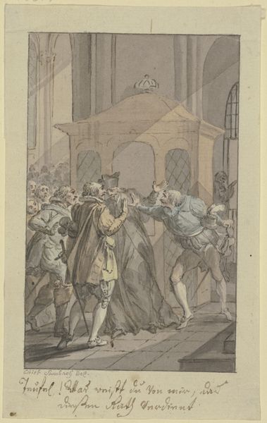 Christian Sambach made this dramatic scene of patricidal rage with pen and ink, and watercolor washes, sometime around the late 18th century. The choice of medium – relatively swift and economical – is well-suited to the artist's subject: a father’s fatal reckoning with his daughter’s lover. Sambach would have used his technical command to describe the unfolding story. Notice the fine hatching he uses to build the shading of the figures, and the way he indicates the voluminous folds of the clothing. While the artist surely spent considerable time on the composition, the actual execution of the drawing would have been quite rapid. The urgency of the narrative is legible in Sambach’s light, transparent, and unblended colors, all of which speaks to a culture in which draftsmanship was valued as a transportable skill, and as a medium of social commentary. The relative speed with which Sambach could produce a drawing like this makes it all the more remarkable, and asks us to question what we value in this time.
