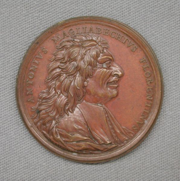 Editor: So, this decorative bronze medal, crafted in 1699 by Giovanni Martino Hamerani, is "In honor of Livio Odescalchi, nephew of Pope Innocent XI." There's a formality to it that's also very human... something about capturing someone’s likeness, don't you think? What’s your take on this piece? Curator: Likeness, yes, but so much more. It's a power move cast in bronze! Imagine gifting or receiving this. Look at the crisp profile, the carefully styled wig – pure Baroque swagger! Think of it as a seventeenth-century "LinkedIn" profile. It tells everyone precisely who Odescalchi *wants* them to see, not necessarily who he is. I wonder, what does the inscription communicate to you? Editor: It's just abbreviations. Looks like it translates to Livius Odescalchi D[ux] G[entis] Sirm[iensis] Brac[ciani D[ux]? Okay, so it says he was the Duke of Sirmium and Bracciano, places I have not thought about today! Do you think most people would understand what it said when it was made? Curator: Exactly! Those titles are social and political currency! Everyone *in the know* back then understood its significance. It's a visual and textual reminder of his status, whispering of power, lineage, and influence. Now, think about its function: was it a pocket-sized advertisement, a mark of prestige, or simply an ego boost for the Duke himself? Editor: Hmmm, pocket-sized advertisement! I hadn't thought of it that way! All those symbolic details really do transform it from a simple portrait into something else entirely. Curator: Precisely! Seeing it that way shifts your perspective, right? History isn't static; it’s a constant, often amusing conversation!