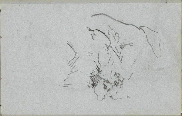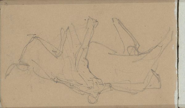 This is "Kat," a graphite drawing by George Hendrik Breitner. It shows a cat crouched down low, its body angled to the right. The artist is working here with elemental materials: graphite, and paper, the most accessible of artistic media. Notice the texture of the paper itself, providing a subtle contrast to the artist's marks. The cat is drawn with a series of short, broken lines, that build up a sense of volume and mass. The drawing is very minimal: a few strokes to indicate the cat's head, body, and legs. Yet the essence of the animal is captured. Breitner was known for his interest in capturing the everyday life of Amsterdam. In this drawing, he has turned his attention to a humble subject: a domestic cat. Yet by giving the animal his full artistic attention, Breitner elevates it beyond mere representation, revealing its inherent dignity and beauty. It is a testament to the power of simple materials, and careful observation.