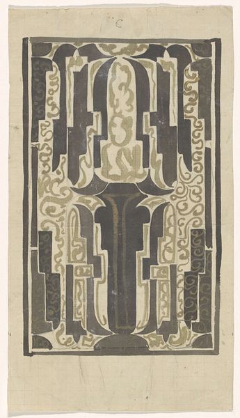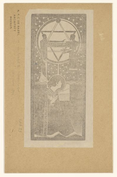 Editor: Here we have "Kruis met ouroboros," or "Cross with ouroboros" by Mathieu Lauweriks, created sometime between 1874 and 1932. It feels almost like looking at an ancient manuscript, weathered and full of symbolic weight. The ouroboros, a snake eating its tail, circles a cross. It's intriguing. What do you make of this, especially given the time period it was made? Curator: Intriguing is spot on! This piece breathes the esoteric air of the late 19th and early 20th centuries, when folks were seriously digging into symbolism and the occult. The ouroboros, right? Eternity, cyclical rebirth... and then BAM! the cross, alluding to sacrifice and redemption, staples of Christian allegory. It is a fascinating juxtaposition! Editor: Right? It’s like he’s playing with these opposing ideas…the cyclical versus the linear…but why put them together like this? Curator: Maybe he's suggesting they're not so different? Lauweriks was clearly influenced by both the spiritual fervor of his time, and mathematical ideas like the golden ratio, aiming for something holistic, some underlying structure to all of existence. You could ask yourself: where does one system begin and the other end? Perhaps it speaks to how ancient beliefs get repurposed for newer value systems. Editor: It’s making me rethink how I see symbols – not as fixed points, but as fluid things that can morph and mingle. It almost makes history feel more like a spiral than a straight line. Curator: Precisely! It's an invitation to play, isn't it? To tangle with these ancient symbols, wrestle with the big questions, and see what new shapes we can coax out of them. An ouroboros after my own heart. Editor: Well, now I can't unsee it! Definitely changed my perspective.