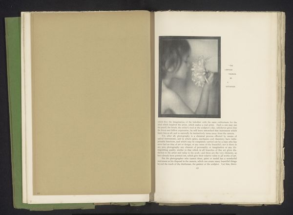 This is Maurice Brémard's photograph, "Portret van een onbekende vrouw" printed in an unknown publication. Brémard worked in a period when photography was trying to define itself as art, separate from its mechanical origins. The sepia toning, soft focus, and subject's averted gaze add to the image's romantic, somewhat melancholic mood. The woman's pose and the draping of fabric evoke classical portraiture, yet the image's ambiguity resists easy categorization. The woman’s identity is unknown, which invites us to consider the power dynamics inherent in portraiture. Who gets to be remembered, and who is relegated to anonymity? Brémard's portrait, despite its traditional aesthetic, subtly challenges our assumptions about identity, representation, and photography's place within the cultural landscape.