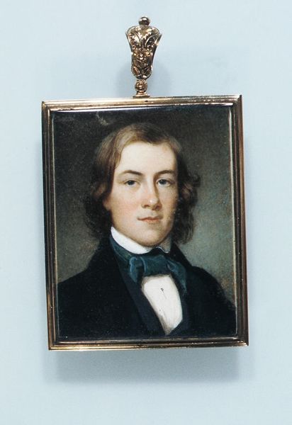 Here is the audio guide script: This is a self-portrait of William Dunlap, rendered in watercolor on ivory. Though small in scale, this piece speaks volumes about the sitter's identity and the cultural currents of his time. Dunlap’s stern gaze and the somber palette reflect the serious demeanor expected of a man of letters in the early 19th century. His neatly arranged cravat, a symbol of sophistication, can be traced back through centuries of European portraiture, each knot and fold carrying nuances of social status. What is curious is to see the cravat echoed in ancient sculptures as a symbol of authority. Much like those figures, Dunlap presents himself with a controlled composure, an emotional restraint that hints at the psycho-social norms of his era. Yet, look closer, and you might glimpse the underlying anxiety of self-representation, a tension felt by artists across epochs, grappling with how to immortalize themselves for posterity. The image serves as a poignant reminder of how symbols persist, adapt, and echo through the corridors of time.