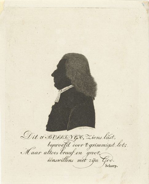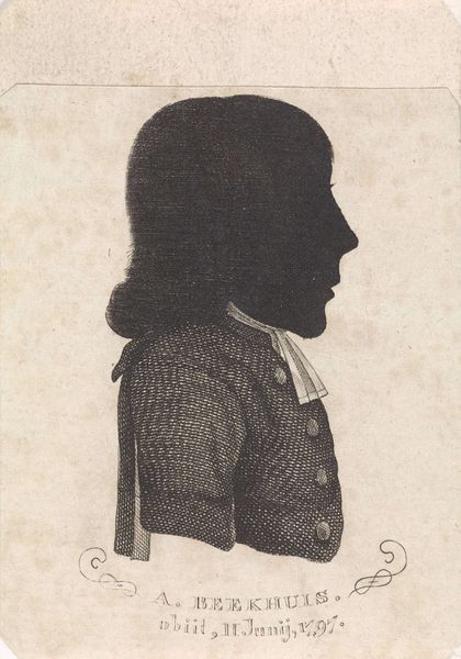 This is a silhouette portrait of Willem van Oosterwijk Hulshoff, crafted by Antoni Zürcher. It captures the sitter in profile, a fashion quite popular in the late 18th century. The profile, seemingly simple, speaks volumes. It evokes ancient coins and cameos, forms that were once symbols of power and status. This harkens back to classical antiquity, a mirror reflecting our enduring fascination with capturing the human likeness. Think of Roman emperors immortalized in profile on coins, their profiles instantly recognizable symbols of authority. The silhouette, in its stark simplicity, strips away the superfluous, leaving only the essential form. Perhaps this echoes a deeper, more primal connection to our ancestors. Consider the cave paintings of Lascaux, where silhouettes of animals leap across the walls, imbued with a life force that transcends time. The profile, then, becomes a potent symbol, a visual echo resonating through the ages.