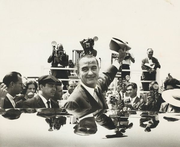 Editor: We’re looking at Larry Fink’s "The Metropolitan Museum of Art, New York City" from 1970, a gelatin silver print. The scene depicts a lively party, seemingly capturing a moment of unrestrained celebration. It's almost voyeuristic. What layers am I missing in understanding this image? Curator: The "Metropolitan Museum of Art, New York City" is a key example of Fink’s social realism, highlighting the contrasts and ironies within social spheres. This isn’t just a party; it’s a look at power, class, and social performance within a specific cultural institution. Think about who is invited to such a gala, what that signifies in 1970s New York. Do you think Fink is celebrating or critiquing the elite? Editor: I see your point. It's less about the fun and more about who gets to have the fun. The man with the saxophone almost feels like he’s putting on a performance *for* the viewer as much as he is for the other people at the event. Does the informality clash with what we'd expect from the Met? Curator: Precisely. Fink often played with the staged nature of social events. His confrontational, intimate style—often employing a wide-angle lens and harsh lighting—reveals vulnerabilities and underlying tensions. By positioning the viewer so close to these figures, he collapses the distance between observer and observed, forcing us to question our own role in this social theater. How does this shift your understanding of photography as a medium? Editor: I initially saw a party, but now it’s like… a study of power dynamics, framed by the museum's cultural authority. Photography here isn't just documenting; it's actively engaging in a social critique. Curator: Exactly! And Fink does it with such compelling immediacy. The "decisive moment" is not just an aesthetic capture but a carefully constructed social statement. We learn about photography's function of framing the narrative around people. Editor: So it's less a snapshot, more a calculated commentary. I'll never see party photos the same way again. Curator: And hopefully more aware of the subtle ways institutions shape those "snapshots."