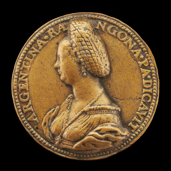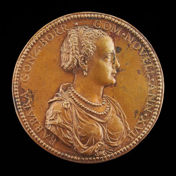 This is a bronze medal portraying Guilia Orsini, wife of Baldassare Rangoni, created around 1554 by Master IAC. URB. During the Renaissance, medals like this served not only as commemorations but also as powerful statements of identity and status. Guilia, depicted in profile, embodies the ideals of feminine virtue and nobility. Yet, her representation is also a carefully constructed image, reflecting her position within a patriarchal society where women's identities were often defined by their marital status and lineage. The inscription surrounding her image reinforces her identity as belonging to the Orsini and Rangoni families, underscoring the importance of dynasty and alliance in shaping individual destinies. Consider the gaze of Guilia, fixed and perhaps defiant, a subtle assertion of individuality within the confines of societal expectation. The medal encapsulates the complexities of female identity in the Renaissance, navigating the intersection of personal agency and social constraint. It serves as a poignant reminder of the enduring quest for recognition and autonomy.
