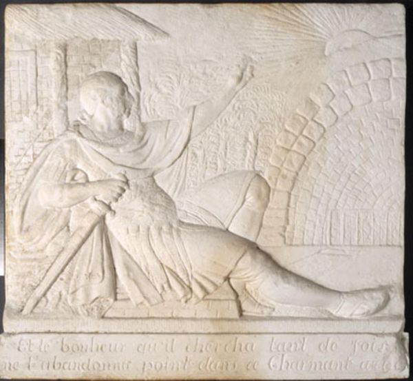 Curator: This is Niels Larsen Stevns’ “Den gode Hyrde,” or "The Good Shepherd," dating from around 1911 to 1915. It's a carved relief—mainly marble and some wood—currently housed here at the Statens Museum for Kunst. Editor: My first impression is one of serene simplicity. The monochromatic palette emphasizes the tactile quality of the stone and highlights the gentle curve of the composition, creating a sense of peaceful harmony. Curator: Indeed. Stevns, working within the framework of early 20th-century religious art, often sought to depict moral clarity. This piece clearly draws from Christian iconography and explores themes of care and divine guidance. It speaks to broader social concerns regarding community and responsibility, especially during a period marked by rapid industrialization and social upheaval. Editor: I see how the formal structure supports those themes. Note how the shepherd figure is centrally placed, literally encircled by a halo-like form, giving a vertical stability countered by the horizontal mass of the flock. That structural solidity seems crucial to the overall meaning, no? The figures aren't idealized, and that texture lends a feeling of grounded humanity. Curator: Precisely. Stevns consciously rejected overtly dramatic religious portrayals common in earlier eras, seeking to imbue this common, humble form with the virtues of pastoral care. This artwork serves as a testament to the enduring human need for symbolic reassurance amidst the vagaries of life. We might even consider it in light of contemporary artistic trends, reacting against Impressionism by reaffirming figuration with deeper emotional roots. Editor: Considering it now, that tactile element—the clear tooling and textured surface—does even more work than initially appears. I now think the raw quality brings the viewer closer to the physicality of the act of sculpting and by association to the embodied act of shepherding. It suggests that these virtuous actions aren’t ethereal abstractions, but rather things realized in material. Curator: Exactly. The visible labor ennobles both shepherd and artist. The material and formal simplicity underscores that the real and true may emerge not from grandeur but the simple, iterative and tactile processes we give meaning to. Editor: Seeing how the narrative informs its specific arrangement helps unpack those loaded values we may often take for granted. Curator: Absolutely, the blend of artistic choices is clearly deliberate. An attentive visual engagement does, it seems, bear fruit.