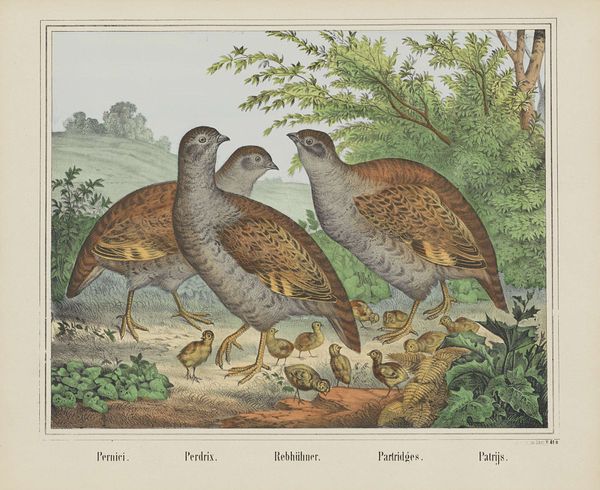 Editor: So, this is "Aigles," created by Maurice Pillard Verneuil in 1897, using watercolor. I’m struck by how flat and decorative it feels, even though it depicts eagles in what looks like a natural setting. It reminds me of a wallpaper design. What are your thoughts on this work? Curator: It’s fascinating how Verneuil synthesizes naturalism and decorative arts here, placing it firmly within the Art Nouveau movement. This blending was quite intentional; artists at the time sought to elevate craft to the level of "high" art, challenging established hierarchies. Note how the stylized eagles become almost symbolic, losing some of their individuality. Does that flattening diminish the animal’s power, or enhance a different kind of symbolism? Editor: I think it shifts the power. The eagles aren’t really *eagles* anymore, but symbols of eagles—more about what the animal *represents*. Maybe something about French national identity at the time? Curator: Precisely. In 1897, France was still grappling with the legacy of the Franco-Prussian War and the instability of the Third Republic. The eagle, a symbol of power and empire, would resonate with national aspirations. The controlled lines and color palette—watercolor chosen for its decorative appeal rather than dramatic realism—create a sense of order and idealized strength, functioning, in a way, like state propaganda, yet presented as "art". Do you see the role of nature, here? Editor: Yes, nature isn't "nature," it is "controlled" nature like gardens within city planning. So this watercolour really pushes art into civic life and national narratives. That's an interesting contrast! Curator: Indeed. By understanding this work within its historical and social context, we can move beyond aesthetic appreciation to explore its complex relationship with national identity and the public function of art. Editor: It's amazing to see how seemingly simple images can hold so much historical weight! It's changed my whole view of the piece.