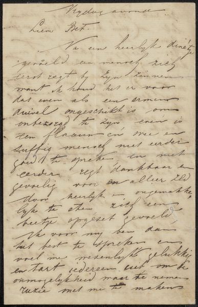 Editor: This piece is called "Brief aan Jan Veth," possibly from 1887-1889, by Chap van Deventer. It's a pen and ink drawing on paper, and the handwriting itself gives it such a personal feel, almost like eavesdropping on a private conversation. What stands out to you? Curator: The visuality of the hand-written text, especially the apparent informality, reveals a lot about the social role of art at the time. Letters, like sketchbooks, provided a space for artistic exploration outside the rigid structures of the academy and the market. Editor: So it’s about more than just the words themselves? Curator: Absolutely. Consider the context. Late 19th century Dutch art was undergoing a period of intense debate about its function and accessibility. Does this letter, addressed to an artist, possibly about artistic matters, suggest a specific artistic community forming, exchanging ideas? How does such intimate communication shape broader artistic trends? Is there any implicit institutional critique by choosing the epistolary form, shunning the traditional Salon exhibitions for a direct approach? Editor: That's a good point, the intimacy seems deliberate. Almost like he’s choosing who gets to ‘see’ his work and ideas. Do you think the choice of script plays a role here? Curator: Definitely. The act of meticulously hand-lettering suggests a value placed on craft, but perhaps also on accessibility. In what way does this script reject or reaffirm class and artistic divides? Or, even reinforce relationships of social capital in the artistic world? Editor: I hadn't thought about it that way, I was focused on the aesthetic. Now I see it's also making a statement about access and the art world at the time. Curator: Precisely! It reminds us that art isn't created in a vacuum; its production, display, and interpretation are all intertwined with broader social and political forces.