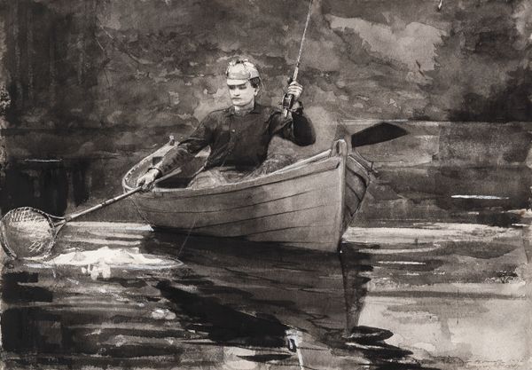 Winslow Homer created 'Shooting the Rapids, Saguenay River', with oil paints. The colours are subdued, like a foggy memory, but the brushstrokes are really alive, especially in the water. It’s like Homer was wrestling with the paint, trying to pin down the fleeting movement of the rapids. Look at the churning water to the left of the image, the way he’s built up the layers of white and cream, it almost feels like you could reach out and touch the spray. There's a real sense of drama and danger in the way he’s handled the paint – thick, expressive strokes that capture the raw energy of the river. And that dark, brooding sky… you can almost feel the weight of it pressing down on the scene. It reminds me a little bit of Courbet, with its emphasis on the physical presence of the paint and its engagement with the landscape. Homer isn't trying to give us a polished, idealized version of nature; he’s showing us something wild and untamed.