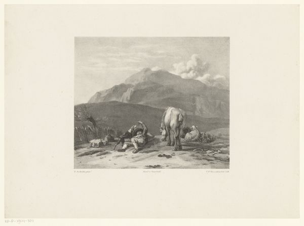 Jules Laurens created this idyllic scene of cows and sheep in a mountain pasture, capturing a romanticized view of rural life. Laurens, born in 1825, lived through a period of significant social and economic change in Europe. As industrialization progressed, artists often looked to the countryside as a refuge from the perceived corruption of urban life. This longing for a simpler existence is palpable in his work. The image presents a serene, almost untouched landscape, yet it subtly touches on themes of labor and the relationship between humans and animals. The animals are rendered with a gentle hand, suggesting a harmony between them and their environment. Does this idealized depiction of pastoral life reflect a genuine connection to nature, or does it gloss over the hardships and complexities of rural existence? It’s a question that lingers, inviting us to consider the stories we tell ourselves about nature and the labor that sustains us.