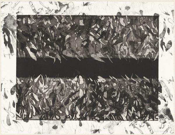 Curator: Here we have an untitled artwork by Franz Kline, created around 1950. The medium includes oil paint and impasto elements, a stunning example of Abstract Expressionism. Editor: Woah, it looks like a landscape viewed during a lightning storm—or perhaps a collapsing skyscraper, rendered with intense energy. The heavy texture really gives it a sense of immediacy. Curator: Precisely. The painting exhibits a vigorous application of matter-painting techniques. Notice how the lines aren't just lines but substantial ridges and valleys of paint. The abstraction of line in the work embodies speed, and the feeling of action. Editor: It makes me think about jazz—that feeling of improvisational chaos, where something new is created out of raw emotion, like notes colliding and forming a melody by accident. But tell me, how does that limited palette of black, green and grey help the experience? Curator: Limiting the tonal range amplifies the focus on the textural and gestural elements. It becomes less about representation and more about the physical act of painting itself. The sharp contrast enhances the drama. The composition highlights the dynamic interplay of textures, with areas of smooth blending beside impasto, creating visual friction. Editor: It's certainly arresting; a study in the sublime. Like staring into the abyss and the abyss staring back, covered in thick paint! Curator: An apt interpretation. Kline’s work, rooted in abstraction, truly opens a gateway to contemplate profound emotional landscapes. The lack of concrete subject matter encourages viewers to bring their own feelings and associations to the piece. Editor: Yes, absolutely. Every glance brings a different emotional hue. It leaves one pondering about process as art, not necessarily depicting a concrete, tangible something. It has a life of its own. Curator: Indeed, and with Abstract Expressionism we find not a final statement, but rather a point of conversation to initiate. Editor: Wonderfully stated; Kline's untitled work acts not as a conclusion but an overture. I love it!