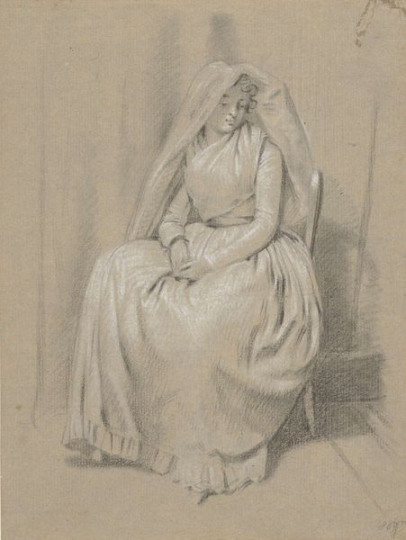 Jens Juel created this study for a portrait of Countess Agnete Marie Rosencrone using pastels, a medium prized for its soft, luminous effects. The visible strokes and smudges of pastel give us insight into Juel's working method. He built up the image gradually, layering colors to suggest the delicate fabric of the Countess's dress and the subtle play of light across its folds. Notice how the pastel's powdery texture lends itself to capturing the softness of skin and the gentle gradations of tone. Pastels allowed artists to achieve a painterly effect with the immediacy of drawing. Juel's skillful handling of the medium demonstrates a mastery of both technique and observation. While portraiture served the demands of aristocratic patronage, Juel also elevated the status of pastel as a medium, bridging the gap between preparatory sketch and finished artwork. Appreciating the materiality of this study allows us to recognize the artistry inherent in the process of creation itself.