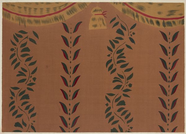 Editor: Here we have "Gordijn met gebatikt patroon van gestileerde peulerwten, bladeren en insecten in spitsovalen" by Theo Nieuwenhuis, likely created before 1911. It's a batik patterned curtain featuring stylized motifs, and it gives off such a handcrafted and serene vibe. I’m curious, how do you interpret this work in the context of its time? Curator: It's impossible to appreciate this work without understanding the context of the Art Nouveau movement. Think of it as a conscious rebellion against industrialization. Artists were turning to nature and handicraft to reclaim authenticity and spiritual connection. Note the recurring motifs: peas, leaves, insects, all abstracted but recognizable. Can you see how this celebrates the organic world in a way that directly counters the cold, repetitive nature of machine production? Editor: Yes, I see what you mean. It's like imbuing everyday life with art, reclaiming beauty and meaning within a domestic sphere. Curator: Exactly! And it's important to consider *who* was expected to live with and appreciate this curtain. These designs were aimed towards an emerging middle class seeking an elevated aesthetic experience, linking design with ethical consumption, rejecting the dehumanization caused by the commodification of the worker under industrial capitalism. How does this artwork challenge our preconceptions about who art is *for*, and what purpose it should serve? Editor: So, it's more than just decoration; it's a statement about values. It makes you wonder how different our world might look if everyday objects were still imbued with this kind of mindful artistry. Curator: Precisely! And it's that conversation—between historical context, artistic intention, and contemporary relevance—that allows us to truly see the curtain for what it is: a piece of history that continues to speak to us today.