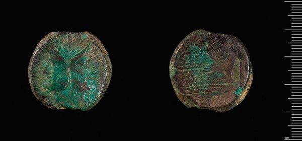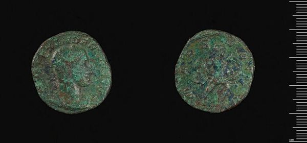 Curator: This is an Antoninianus of Claudius II Gothicus, currently residing at the Harvard Art Museums. The weight is around 2.53 grams. Editor: There’s something haunting about this small coin—the patinated surface, worn smooth by time, hints at the countless hands it has passed through. Curator: Indeed. Coins such as this were not merely currency; they were tools of imperial propaganda. The imagery and inscriptions were carefully crafted to convey power and legitimacy. Editor: I wonder about the experience of the marginalized under his reign. How might someone excluded from its promise of prosperity view this object? Did it hold the same symbolic weight? Curator: An important question. The public role of these coins extended to solidifying the emperor’s image, yet their impact varied vastly depending on social status and geographic location. Editor: It’s a stark reminder that even the smallest artifact can be a potent symbol of power and its uneven distribution. Curator: Precisely. Reflecting on this coin invites us to reconsider the narratives of value, influence, and marginalization throughout history.