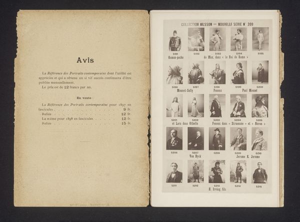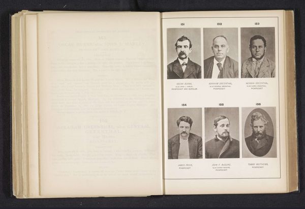 This unbound leaf of portraits, of unknown date and by an anonymous hand, presents a formal arrangement of twenty-five figures within a grid-like structure. The stark monochrome palette emphasizes the tonal variations within each photographic portrait, drawing attention to the textures of clothing, facial hair, and the subtle gradations of light and shadow. The composition is rigidly organized, with each portrait occupying an equally sized rectangular space, suggesting a system of classification and order. This echoes the structuralist impulse to find underlying patterns and systems in cultural phenomena. The repetition of the portrait format, coupled with the uniformity of presentation, hints at the interchangeability of the subjects, even as their individual features strive to assert uniqueness. The leaf functions as a semiotic field, where each portrait acts as a signifier, pointing to a person. Yet, stripped of context, these signifiers become destabilized. We are left to ponder the nature of representation, identity, and the cultural codes that underpin our understanding of the individual within a larger social framework.