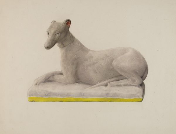 Editor: This is "Belle of Bloomsbury" by Sir Cedric Morris, held at the Tate. It's... a very unusual dog portrait. The dog’s pose and expression are almost human. What strikes you about this piece? Curator: The materiality jumps out. Morris treats paint almost sculpturally here. How does this subvert traditional portraiture's class-based power dynamics through its focus on process and the labor of painting? Editor: That's an interesting perspective. I hadn't considered the labor involved in creating this image. Curator: Exactly. This isn't about idealizing the sitter, it's about the act of making. How might the choice of a dog further challenge societal norms around portraiture? Editor: I see what you mean. It really makes you think about the value we place on different subjects and artistic processes. Curator: Precisely. I'll remember this. Editor: Me too!