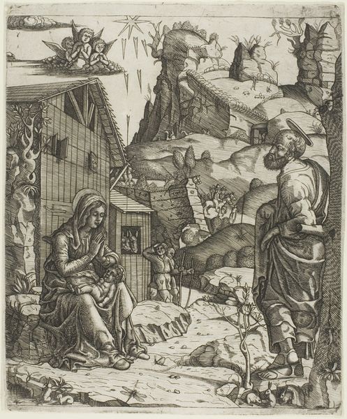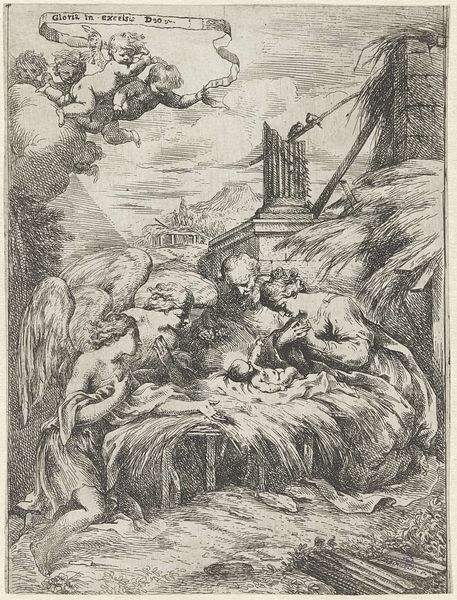 This print, *De heilige Hiëronymus als kluizenaar*, or Saint Jerome as a Hermit, was made by an anonymous artist using the process of engraving. The process begins with a metal plate, likely copper, into which the design is carefully incised with a tool called a burin. The artist would have used the burin to remove slivers of metal, creating lines that hold ink. The plate is then inked, and the surface wiped clean, leaving ink only in the engraved lines. Finally, damp paper is pressed against the plate, transferring the image. The character of the line in this print is a direct result of this laborious process. Notice how the varying depths and thicknesses of the lines create shading and texture, from the saint's beard to the lion's mane. It's remarkable to consider the skill and time required to produce such a detailed image through such an indirect process. By focusing on the materials and processes involved, we can appreciate the cultural significance of printmaking as a means of disseminating images and ideas, while also recognizing the labor and expertise that went into each impression.