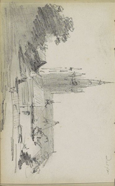 Editor: So, here we have Adrianus Eversen’s “Landschap met een boerderij,” a landscape with a farm, likely from sometime between 1828 and 1897, rendered in pencil. It feels very raw, like a quickly captured impression. What catches your eye? Curator: Well, it’s fascinating to consider this piece within the context of 19th-century Dutch landscape painting. Think about the rise of Realism and the desire to depict everyday life and the Dutch countryside. How does this seemingly simple sketch engage with that broader movement? Editor: It seems like a study, almost like a practice piece, more so than a grand statement. Curator: Exactly! And that’s where its interest lies for me. Consider the role of the artist in society at that time. They were increasingly expected to be chroniclers of their time, documenting the changing landscape, and contributing to a growing sense of national identity. Does this sketch give us a clue as to how those images were workshopped and sketched before color was even involved? How might it have fit into that framework? Editor: That’s interesting. It’s almost like seeing the artist's process, their first thoughts on the subject. Is it possible to see the farm as part of some cultural narrative of Dutch identity? Curator: Absolutely. The farm is more than just a building; it’s a symbol of rural life, of the land, and of a certain idea of Dutch tradition. Think about how the image of the idealized countryside was being used to build a sense of shared heritage. Did this sketch pave the way for the romantic portrayal of that identity? Editor: That’s a perspective I hadn’t considered. I tend to focus on aesthetics first! Curator: And that’s perfectly valid, but situating it in the wider historical and cultural narrative allows us to understand it in a completely different light. We begin to see it as more than just an isolated sketch, but as part of the bigger cultural politics. Editor: Thanks, this has really opened my eyes to how much the context influences how we see even a seemingly simple sketch. Curator: Precisely! Looking at the layers, contextually speaking, shows a greater statement of culture than initially perceived.