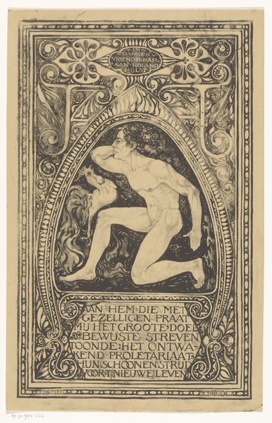Koloman Moser created this allegorical print, titled 'Spring Morning'. It uses muted colors and sinuous lines characteristic of the Art Nouveau style. The print encapsulates the spirit of early 20th-century Vienna, a city grappling with traditional values and modern desires. Moser, deeply influenced by classical and Renaissance art, reinterprets the nude form, positioning them within a decorative, stylized landscape. What emerges, though, is a nuanced commentary on gender and identity. The women strike melancholic poses, embodying a passive role compared to the idealized, active male figure. The central female figure, framed in black, seems caught between worlds, perhaps mirroring the era's complex attitudes toward women's roles. The allegorical style, while seemingly timeless, subtly reflects the societal constraints and expectations placed upon individuals, particularly women, during this pivotal time in European history. In its layered meanings, 'Spring Morning' offers a space for reflection on identity, desire, and the evolving landscape of gender roles.