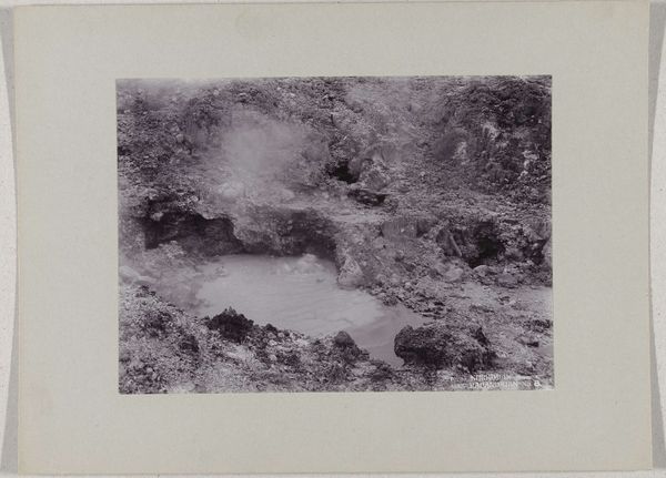 Curator: Here we have Minor White’s 1959 photograph, “Shore Acres State Park, Oregon,” rendered in gelatin silver. What are your first impressions? Editor: Brooding. It's almost entirely monochromatic, shades of gray clinging to stone. That dark, reflective form nestled amidst the rock seems…significant, but I’m unsure why. Curator: Well, considering the gelatin silver print medium, it's crucial to appreciate White's manipulation of light and shadow in the darkroom. His control over the tonal range elevated the photograph, moving it away from a simple documentary image and toward abstraction. What we're seeing is not merely a landscape but a testament to White's darkroom practice and engagement with modernist ideas. Editor: I see it as an archetypal object cradled by the earth. Its rounded shape suggests a life-sustaining symbol, like an egg or a seed, placed in a nurturing landscape, echoing ancient fertility rites, don’t you think? And the ambiguous nature of the object adds to the image's mystery. What is its symbolic weight? What could this be alluding to, conceptually? Curator: Perhaps. However, I tend to think White was deeply engaged with the surface qualities themselves – the texture of the stone, the reflectivity of the embedded object. He pushed the limits of the gelatin silver print to highlight material transformations and our perception. The surface betrays tool use; it wasn't rendered naturally. Editor: Yet it is this materiality combined with light that invites allegorical interpretations. The interplay between light and shadow, texture and form… It suggests something beyond the immediate. It speaks to primal connections with the earth. The modern and primitive collide and co-mingle here, don't you agree? Curator: An astute observation. There is something ancient co-mingling with modernist sensibilities and his focus on photographic processes in an image like this. I think White encourages us to move beyond representation. Editor: And in doing so, he invites us to plumb deeper meanings. This seemingly simple arrangement is replete with profound meaning; what else is concealed within, culturally? Thank you, Minor White! Curator: Indeed, a powerful demonstration of materiality transformed into art. A brilliant conclusion.