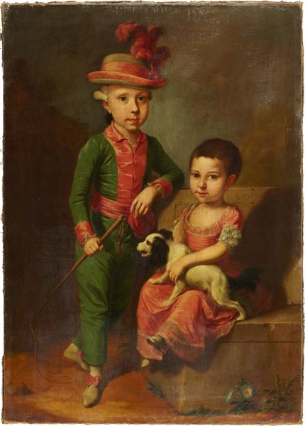 Joshua Johnson’s ‘Edward and Sarah Rutter’ presents two children amidst symbolic objects, rendered in oil on canvas. Notice the formal arrangement; the two children are centrally positioned against a dark, undefined space, illuminated with a gentle light that models their forms. The painting’s structure balances formal portraiture with elements of symbolic narrative. For example, the cardinal and cherries introduce a discourse on natural innocence, youth and the transient nature of beauty, while the children's attire speaks to societal status and belonging. The composition is structured around simple geometric forms, lending the painting a sense of order and balance that speaks to both Classical ideals and emerging American identities. The subtle interplay of darkness and light accentuates the visual components which ask us to consider the relationship between representation and reality, and invites a reconsideration of our own assumptions about historical representation.