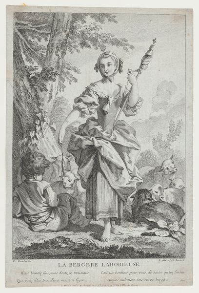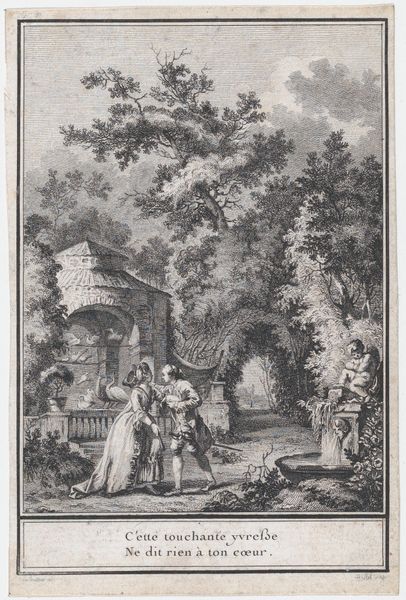 This print, Le Colin-Maillard, or Blind Man’s Bluff, was made by Jacques Firmin Beauvarlet sometime in the late 18th century. It's an engraving, meaning that the image was incised into a metal plate, likely copper, using a tool called a burin. Consider the skill involved in this meticulous, labor-intensive process. The engraver would have needed to be highly trained, understanding how to translate the original design into a network of lines and marks. The varying depths and thicknesses of these lines create tonal variations, giving the print its sense of depth and texture. Look closely, and you'll notice the engraver's hand in the delicate rendering of fabrics, foliage, and the expressions on the figures' faces. Prints like this were often made for a growing consumer market, and would have been relatively affordable compared to paintings. Yet, the skill and artistry required to produce them shouldn't be underestimated. This print invites us to consider the labor and expertise involved in creating images for mass consumption.