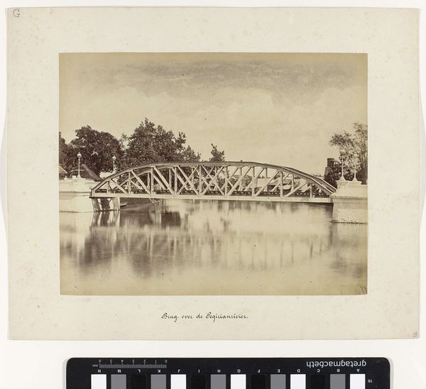 Editor: Here we have Herman Salzwedel’s "Brug over de Porrongrivier bij Tjepiples," a photograph from sometime between 1880 and 1888. The muted tones give it such a timeless quality. It’s beautiful in a way, but I wonder about the story behind the bridge itself. What strikes you when you look at this photograph? Curator: Well, first, I consider the materiality of photography itself during this period. It was hardly a transparent medium. This image is more than a straightforward record. It represents labor: from the mining of the silver for the photographic emulsion, to the making of the paper. It’s all part of a chain that extends into the photograph itself. Editor: That’s fascinating! So, it's not just about what’s *in* the photograph, but also *how* the photograph came to be? Curator: Precisely! The bridge speaks to industrialization, while the photogram references a unique process for photographic printing, one requiring highly skilled darkroom technicians and costly infrastructure. Someone had to build that bridge, extract the ore, manufacture the equipment... Consider the colonial implications, too. Where were the resources for the photograph and the bridge sourced from, and under what conditions? Editor: So you are saying this photograph offers a way to reflect on how different social, material, and even colonial systems connect with each other through one object? Curator: Exactly. Salzwedel wasn’t simply capturing a bridge, he was participating in, and reflecting, larger systems of production and power. The toned paper reminds us of its age and its status as a carefully crafted object rather than a simple snapshot. Editor: I never thought about a landscape photo in terms of labor and systems before! It gives a whole new weight to the image, understanding how deeply embedded it is. Curator: Indeed, considering the materials, production and social contexts is essential for a deeper understanding of art’s role within a culture.