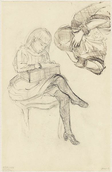 Curator: Here we have a pencil drawing by Jozef Israëls, known as "Portret van een vrouw, van opzij," dating from 1834 to 1911. Editor: It’s incredibly delicate, isn't it? There's almost a whisper of presence here. I’m drawn to the soft hatching and the way the light seems to emanate from the page itself. Curator: Israëls, celebrated for his intimate genre scenes and portraits, especially of the Dutch working class, frequently used drawings like this to explore character and composition. One wonders about the social positioning of this particular sitter… was this commissioned, or was it an exercise? Editor: The very visible pencil strokes highlight the labor of image creation, making this feel less like a grand statement and more about the act of seeing and recording. Her lacy collar, the rendering of her dress – it shows careful observation of everyday textiles, elevating them through close representation. Curator: Precisely. The setting is vague, really secondary to conveying the woman's apparent introspection. It subtly suggests broader social themes of quiet dignity, and perhaps the emotional lives of ordinary women, within a culture that constrained them in so many ways. Editor: Absolutely. There’s a sense of restraint not just in the subject’s pose, but also in the medium itself. Pencil feels so direct, so unpretentious in comparison to oils or sculpture, perfectly capturing the unassuming character of this sitter and possibly revealing Israëls focus on accessibility of materials. Curator: The Realist movement to which Israëls belonged definitely favored truthfulness to accepted, academic beauty. It shifted aesthetic focus towards humble subjects in reaction to powerful structures within both society and artistic spheres. Editor: I agree. He isn’t idealizing her. Instead, we have a human connection across time forged with nothing more than paper and graphite, celebrating the worth found in everyday things and challenging conventional notions of artmaking through this directness. Curator: Thank you for offering such grounded insights! I believe your material considerations broadened my appreciation significantly. Editor: My pleasure. Examining the physicality of art provides a grounding influence to understanding artistic agency.