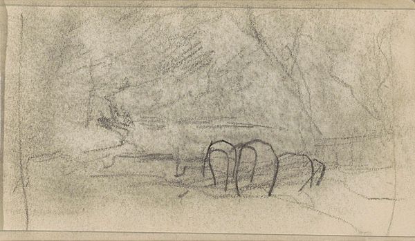 Louis Apol made this study of trees with graphite on paper. These are humble materials, of course, utterly unlike the expensive pigments and canvases used for finished paintings. The artist has used the pencil in a variety of ways, from short, sharp strokes suggesting the texture of bark, to longer, flowing lines that describe the overall form of the trees. There is a clear distinction between this drawing and the completed oil paintings for which Apol is best known. These are highly detailed, romanticized landscapes. But in this study, we see the labor of observation, the artist working through the process of understanding his subject. Although graphite and paper are common materials, Apol's skilled handling transforms them into something expressive and beautiful. The image reminds us that even the most seemingly straightforward materials can be imbued with artistic value through the skill and vision of the maker.