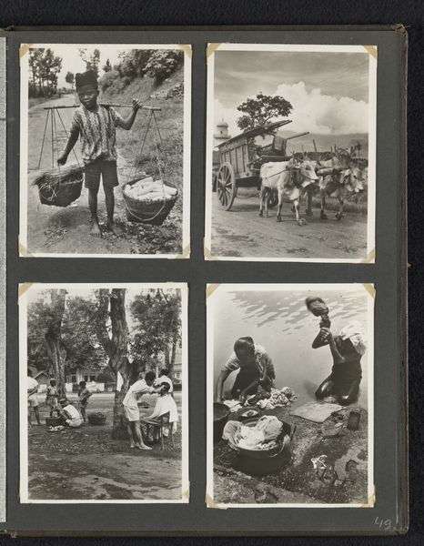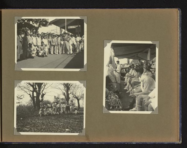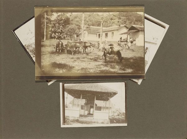 This photo collage, Leprozenkolonie Danaradja: diverse onderwerpen, made by an anonymous artist captures a series of scenes, almost like stills from a silent film, each sepia-toned image offers a glimpse into a world both distant and intimate. The monochromatic palette lends a timeless quality, inviting us to consider the process of image-making itself. The textures are tactile, from the grainy surface of the prints to the smooth mounting card. Notice the wear and tear, like faint creases, which adds a layer of depth. Look closely at the photograph of the table with various bottles and jars on top. It's as if the objects are frozen, each one a silent witness to the stories unfolding around them. This work reminds me a little of early examples of collage and photomontage by artists like Hannah Hoch. Like her work, this piece embraces ambiguity and multiple interpretations, reminding us that art is an ongoing dialogue.