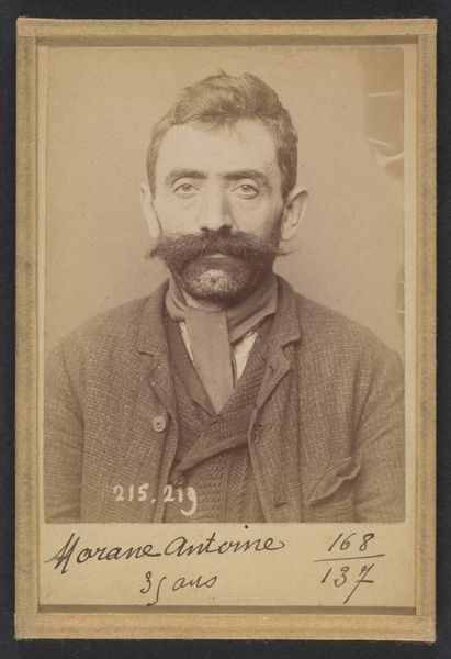 This photograph by Alphonse Bertillon captures Édouard Dejernier, an anarchist, in 1894. The symbols of identification—the stark frontal pose, the numbers scrawled across the image—speak to the rise of scientific methods of cataloging individuals, an attempt to control the unruly elements of society. Consider the mustache, a pronounced feature that frames Dejernier's face. Across history, facial hair has signified virility, wisdom, or rebellion. Think of the proud mustaches of Assyrian kings, emblems of power, or the later, defiant beards of 19th-century revolutionaries. Yet here, the mustache, combined with the plain clothing, paradoxically signifies conformity to a certain type of anarchist, hinting at the complexities of identity within social movements. This image, seemingly a straightforward record, stirs deep-seated emotions. It is a stark reminder of how society attempts to categorize and contain those who challenge its norms, sparking questions about freedom, control, and the enduring human spirit of defiance. The act of documenting, of capturing a likeness, becomes a powerful tool, yet the subject's gaze reminds us of the individual's resilience against being reduced to mere data.