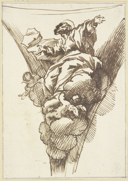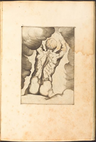Luca Ciamberlano made this print on paper sometime between 1599 and 1641, using the intaglio process. In intaglio, the image is incised into a metal plate, often copper, with tools or acid. Ink is then forced into these lines, the surface wiped clean, and the image transferred to paper under high pressure. Look closely, and you can see how the pressure of the printing process has left an impression on the page, a subtle relief where the lines of the image push slightly forward. The choice of paper is also crucial. The absorbency of the paper, its texture, and even its color all affect how the ink is received and how the final image appears. Also, notice the page’s discoloration; its imperfections, stains, and creases all speak to the paper’s age. Understanding these material aspects gives us insight into the artist's intentions, but also reveals the broader economic and social context. Printmaking allowed for the wider distribution of images, democratizing art in a way previously unimaginable, connecting the hand of the artist to the burgeoning world of commerce.