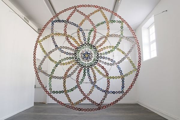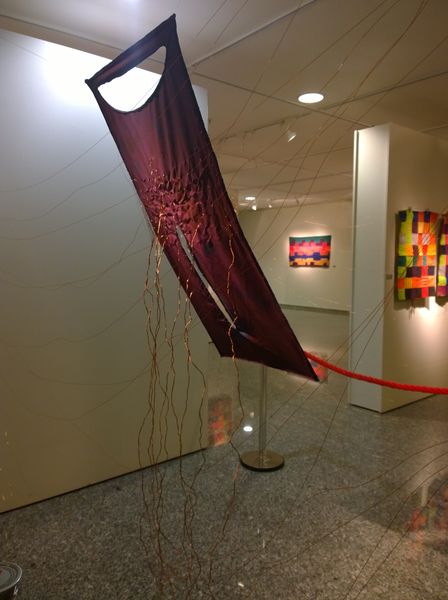Editor: This artwork, titled "Untitled" by Rodrigo Franzao and created in 2014, is a fascinating mix of materials including collage and textile. It feels both vibrant and fragmented to me. How do you interpret this work? Curator: I see layers of visual language woven together. The geometric forms, bursting with color, evoke a sense of Pattern and Decoration, yet the fragmented nature leans towards Abstract Expressionism. Look closely—do you notice how the artist seems to be building up cultural memory with these recognizable shapes? The use of textile in collage hints at histories of craft and domesticity elevated into a high art form. Editor: That's interesting! So, the choice of materials also carries meaning, going beyond just aesthetic considerations? Curator: Absolutely. The "stuff" matters. The inherent warmth of the textiles, combined with the collage technique, suggests the piecing together of memories, perhaps even a disruption or a rewriting of inherited narratives. It's as though Franzao is creating a visual tapestry of collective experiences. What stories do you think it could be trying to tell? Editor: I guess the abstraction allows for a lot of different possibilities, doesn't it? The geometric shapes…are they symbolic, or simply part of the overall design? Curator: Consider that geometry itself often carries symbolic weight. Think about mandalas or sacred geometry. Franzao seems to play with that history, but then undermines any rigid structure through the collage elements. It's this tension, this dialogue between order and chaos, that makes the piece so compelling. Editor: It sounds like understanding the artist's background and intention could give us a more informed understanding of the cultural memories being communicated by the visual symbolism. Curator: Indeed! By understanding that connection we may view artwork in ways we had not originally intended. Thank you for sharing that observation! Editor: Thank you for pointing out so many historical connections within this modern artwork.