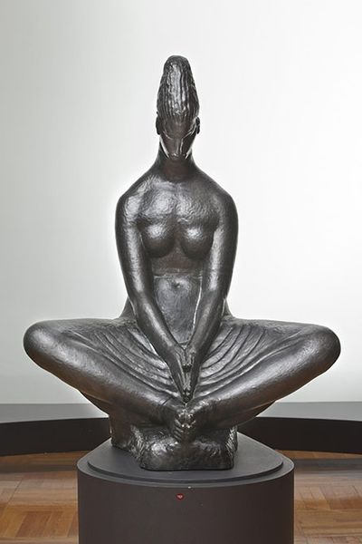 H.P. Pedersen-Dan made this bronze sculpture, Amatøren. Danserinde, sometime between the late 19th and early 20th century. Look at the way that light glints on its surface! The material is so present here, isn't it? You can see how Pedersen-Dan worked the malleable bronze to conjure a sense of movement and lightness. The sculpture isn't trying to trick us into thinking it's real; instead, it celebrates the beauty of its own materiality. The dress that the dancer holds is particularly striking, with its heavy folds transformed into something so elegant. I love the rough texture of the base, it contrasts so beautifully with the smooth, polished surface of the dancer's body and clothes. It almost reminds me of Degas' sculptures, where he similarly captured fleeting moments with such sensitivity. Art is always a conversation, a dance between artists across time. And like any conversation, it's full of surprises and unexpected turns.
