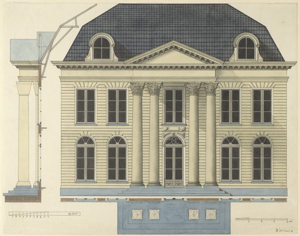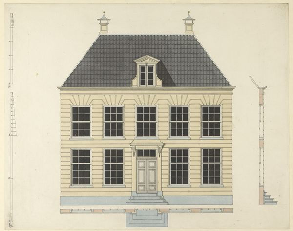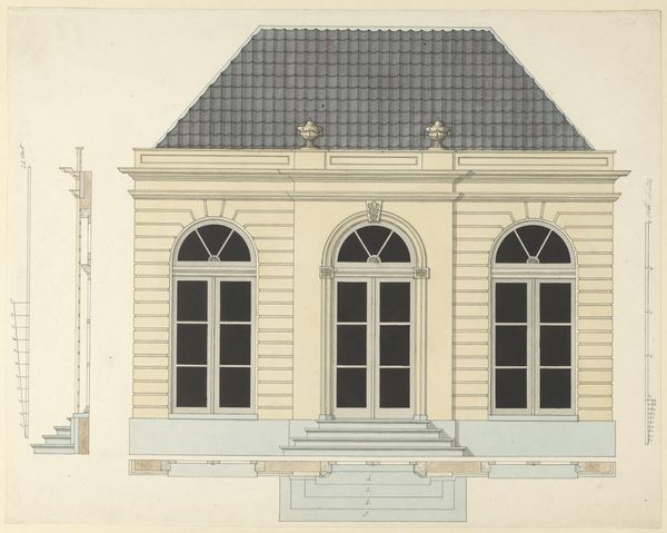 This is Wybrand Tollenaar’s architectural design for a residential facade. Note the symmetry, the arched windows, and the balustrade on the roof. The arches are potent symbols, recurring throughout history from Roman aqueducts to Gothic cathedrals, each time signifying strength and passage. Here, they suggest a welcoming threshold, an invitation to the domestic sphere. Above, the balustrade isn't merely decorative; it echoes the classical pursuit of order and harmony, reminiscent of ancient temples. Consider how these forms evoke a sense of permanence. The design reflects a desire to establish roots, to create a lasting legacy. These architectural gestures are not merely aesthetic choices but resonate with the collective memory of civilizations past, a continuous, cyclical return of forms expressing fundamental human aspirations.