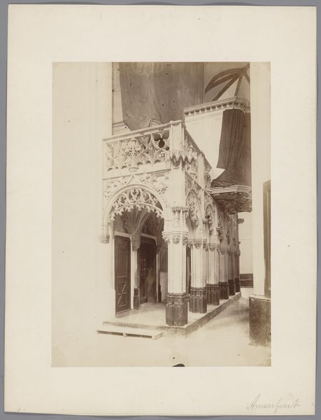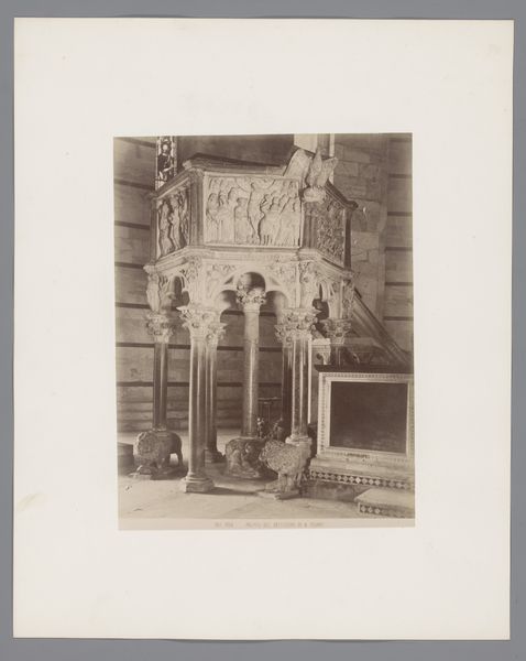 This is a photograph of a "Grafmonument in de Sint-Gertrudiskerk te Bergen op Zoom," whose maker is sadly anonymous. Though this is a photograph, it depicts a sculptural monument made of stone, with different kinds of marble applied for a decorative effect. This involved quarrying the stone, transporting it, and then carving it with specialized tools. The use of marble indicates wealth and status, both in the cost of the material and the skilled labor required to work it. Looking closely, you'll see that the columns have been carefully turned on a lathe, and other details precisely cut, smoothed, and polished. All of this would have been done by hand, reflecting a considerable investment of time. The monument itself serves as a reminder of how making and materials come together to create cultural meaning and preserve memories, challenging any perceived boundary between craftsmanship and fine art.