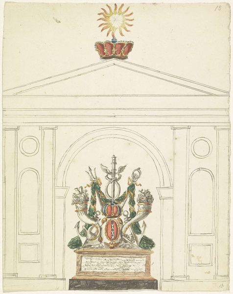 This is an anonymous print from 1814, titled "Wapen van Willem Frederik, prins van Oranje als souverein vorst," or "Coat of Arms of William Frederick, Prince of Orange as Sovereign Prince." In the early 19th century, as Europe was being reshaped after the Napoleonic Wars, the Netherlands was transitioning from French rule back to an independent state under the House of Orange. The print is not just a display of heraldry; it's a proclamation of restored power. Two crowned lions flank a shield densely packed with symbols of lineage and authority, all beneath an elaborate crown. Cannons, flags, and spears litter the base, underscoring military strength. But consider what isn't shown: the complex negotiations, the shifting alliances, and the popular sentiments that shaped this moment. It is the return of a familiar figurehead, a powerful man ready to lead after a period of upheaval. The print, beyond its ornamental function, serves as a potent reminder of the stories we tell ourselves about power, identity, and nationhood.